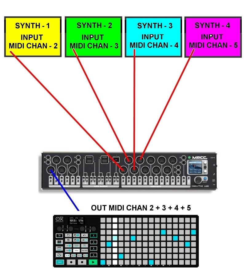I make drawing only to get the idea as part of my setups  using sequencers OXi one and Polyend SEQ total of 16 differ MIDI channels  as 1 to 16 Using many many DIN cables  So you all understand  why i like using the MRCC  with the switch  buttons