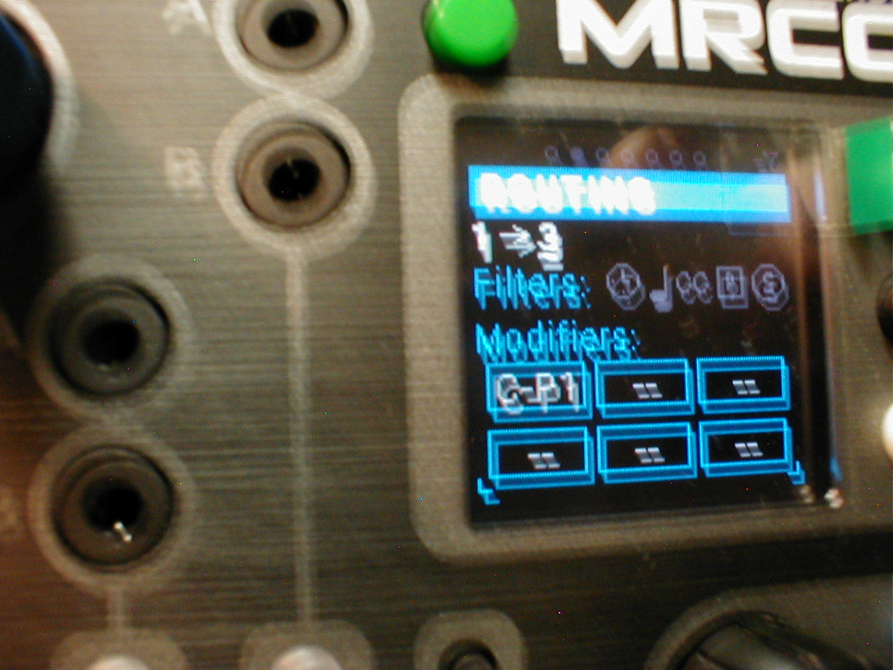 So the set this up you would put the input device into Port 1 input, then press the green button and navigate to the Routing page (page 2 of the menu) by turning the encoder. Then for each port you want to route to, you will do the following: