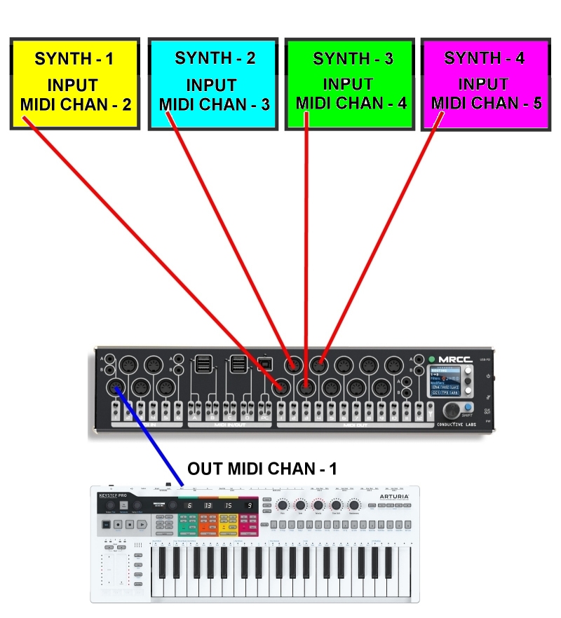 MRCC MID DIN INPUT -1   have a keybord / Sequencer and all my SYNT use differ midi channel input like this: